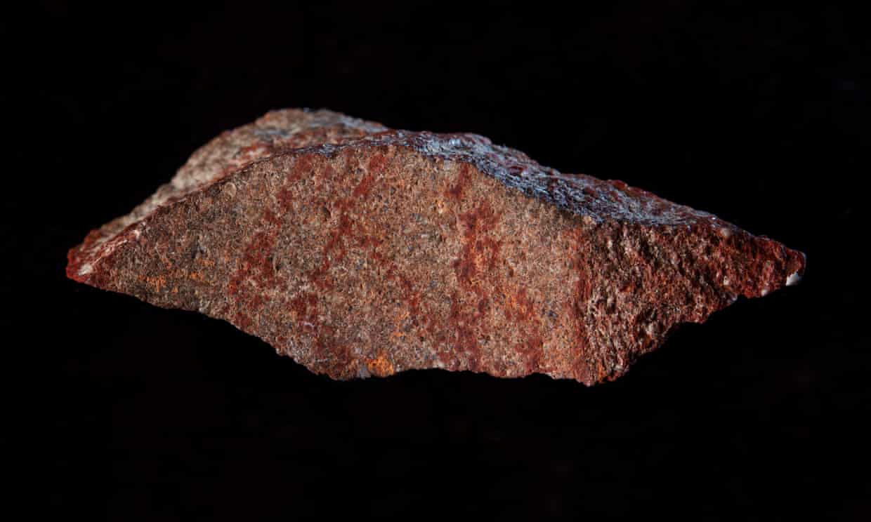 Archaeologists in South Africa have discovered the oldest intentionally painted art piece ever found. It is a shard of a grinding stone that has been been deliberately colored with a red ochre crayon. The hatched design is a symbol seen in other areas. Carbon dating dates the find to be 73,000 years old. It just goes to show you, we have been playing with crayons for a long time! Read the full article here. https://www.theguardian.com/science/2018/sep/12/earliest-known-drawing-found-on-rock-in-south-african-cave